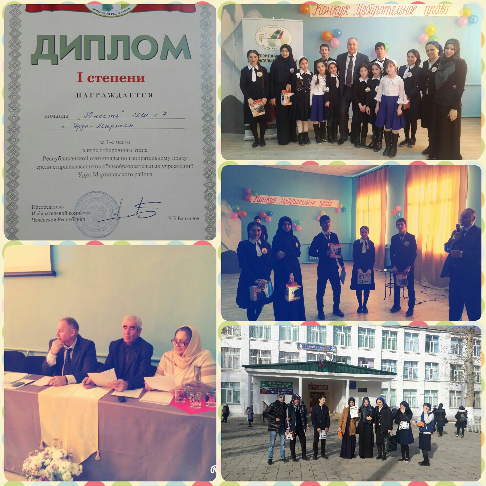 11.12.201511 декабря 2015 года команда "Юность" МБОУ "СОШ N7 г.Урус-Мартан" заняла 1 место в игре отборочного этапа Республиканской олимпиады по избирательному праву среди старшеклассников общеобразовательных учреждений Урус-Мартановского района.