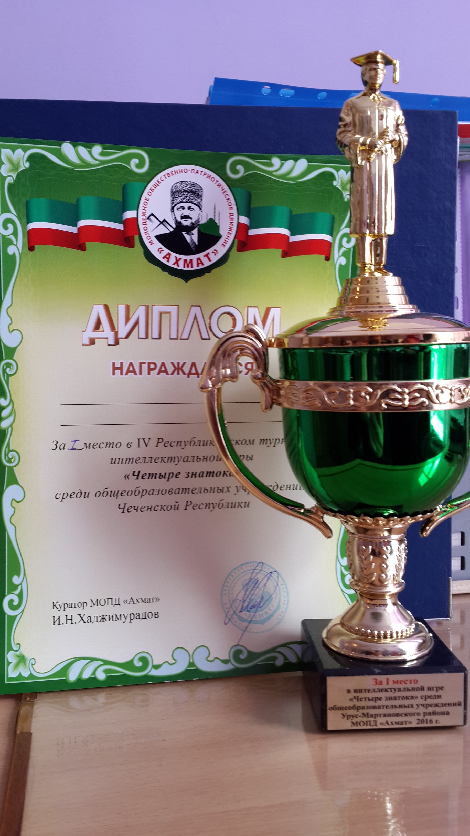 Команда МБОУ "СОШ №7 г.Урус-Мартан" заняла 1 место в Республиканском турнире интеллектуальной игры "Четыре знатока" среди общеобразовательных учреждений Чеченской Республики.