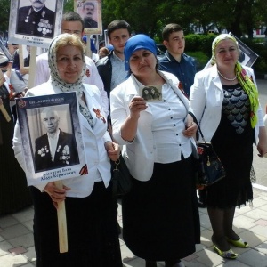 Учителя нашей школы приняли участие в шествии Бессмертного полка. Альтигова З.В. несет фотографию отца, который встретил победу в Австрии, Мальсагова Р.С. пришла с фотографией дяди, который пропал без вести в 1942 году.