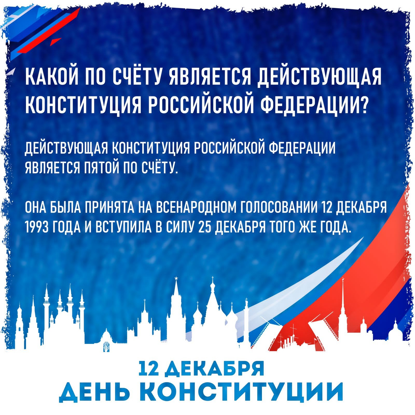 «День Конституции» — государственный праздник, празднование принятия Конституции в современной России — Российской Федерации, отмечается 12 декабря