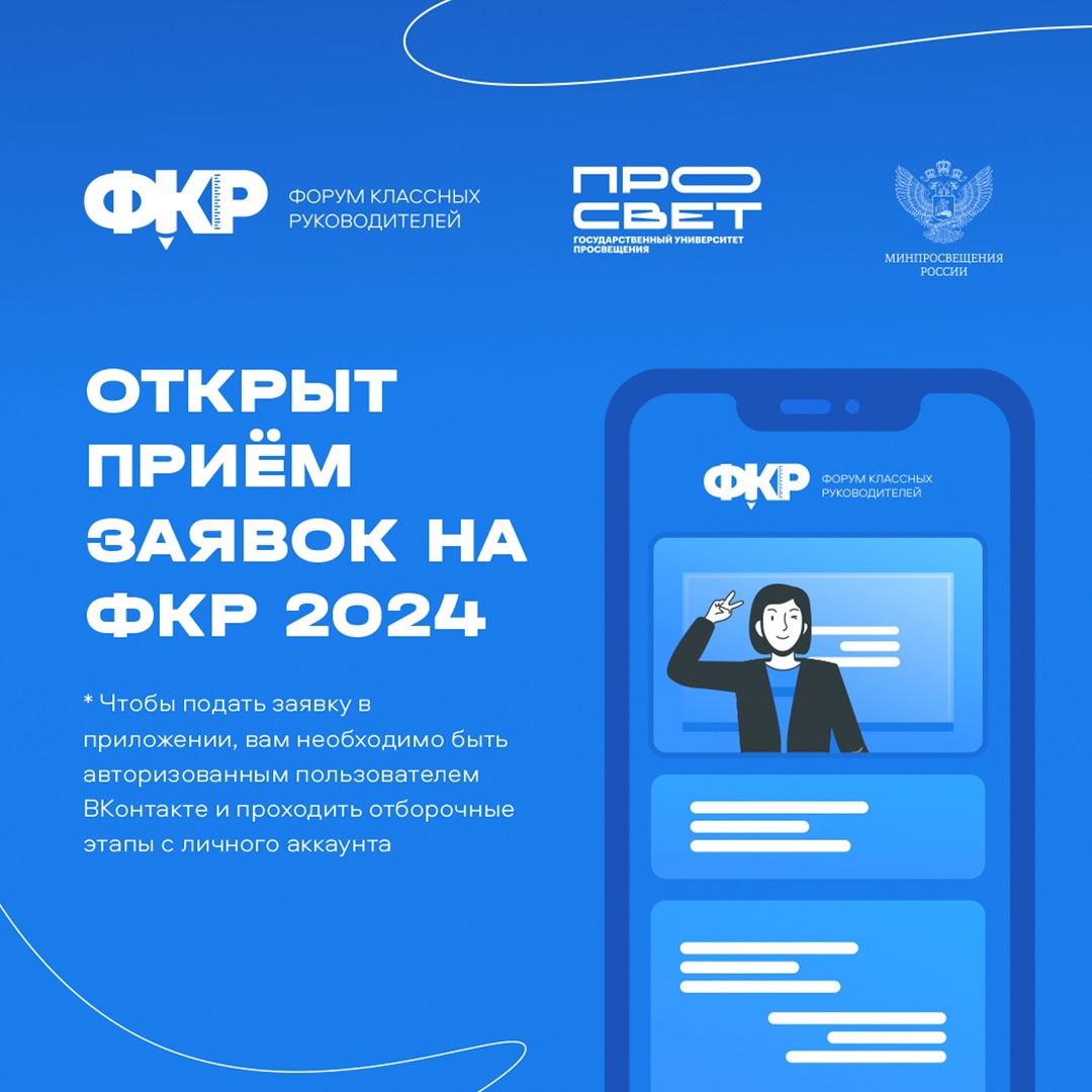 24.04.2024Самые классные руководители уже могут подать заявку на ФКР-2024!До 10 июня необходимо заполнить анкету по ссылке: https://clck.ru/3ADit4.