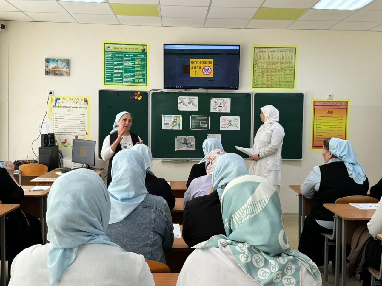 Сегодня, 26 апреля, медсестрой Ибрагимовой М. была проведена профилактическая беседа "Первая помощь при укусах змеи" с пед коллективом школы.