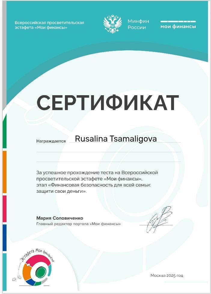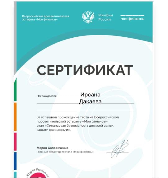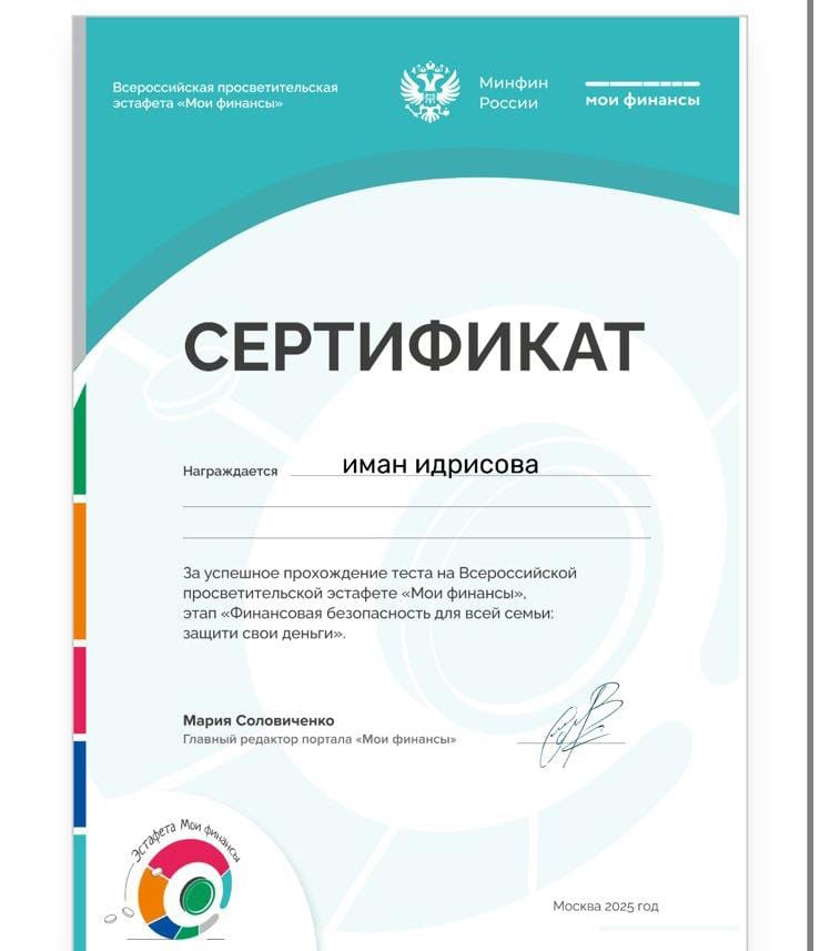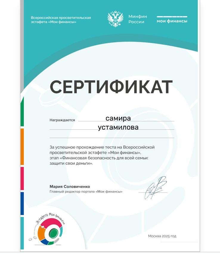 16.09.2025Квиз “Финансовая безопасность для всей семьи: защити свои деньги»В рамках Всероссийской просветительской эстафеты «Мои финансы», этап «Финансовая безопасность для всей семьи: защити свои деньги», учащиеся 7 «Г» класса вместе с учителем обществознания Исаевой М.Р. приняли активное участие в тестировании «Квиз: Финансовая безопасность для всей семьи: защити свои деньги».