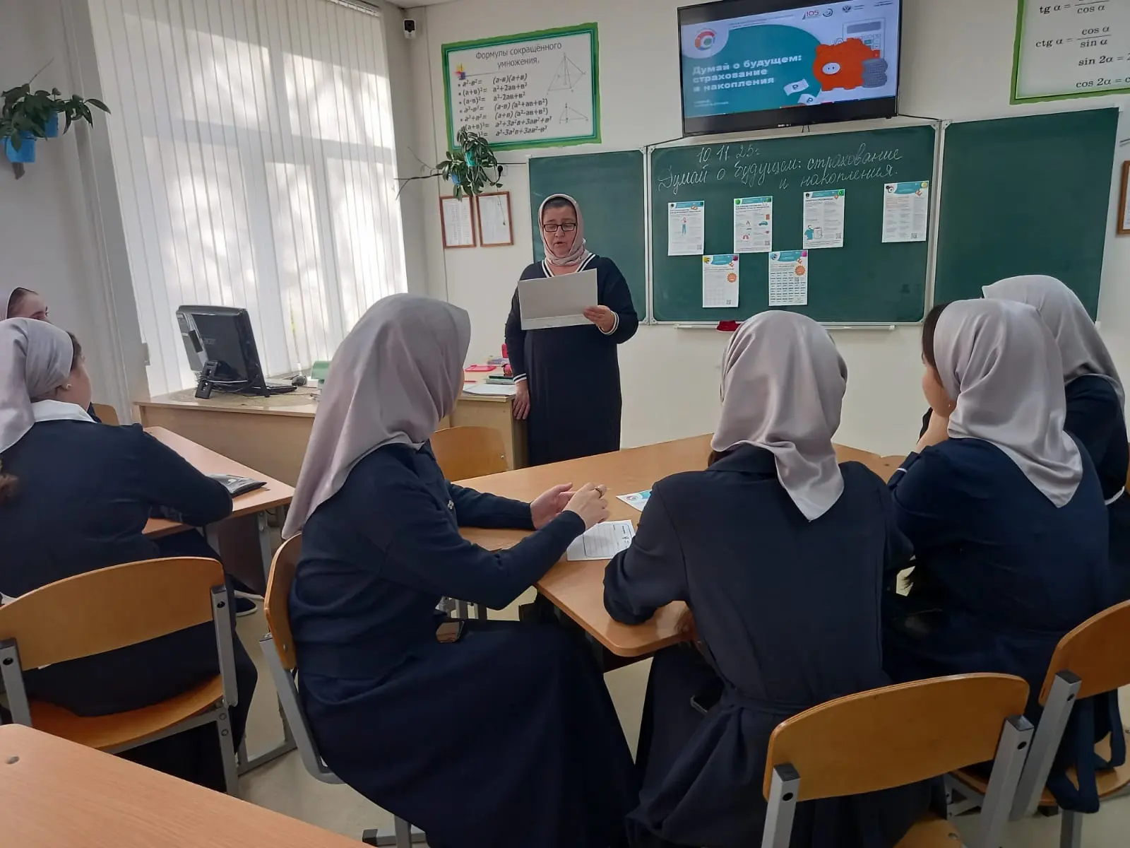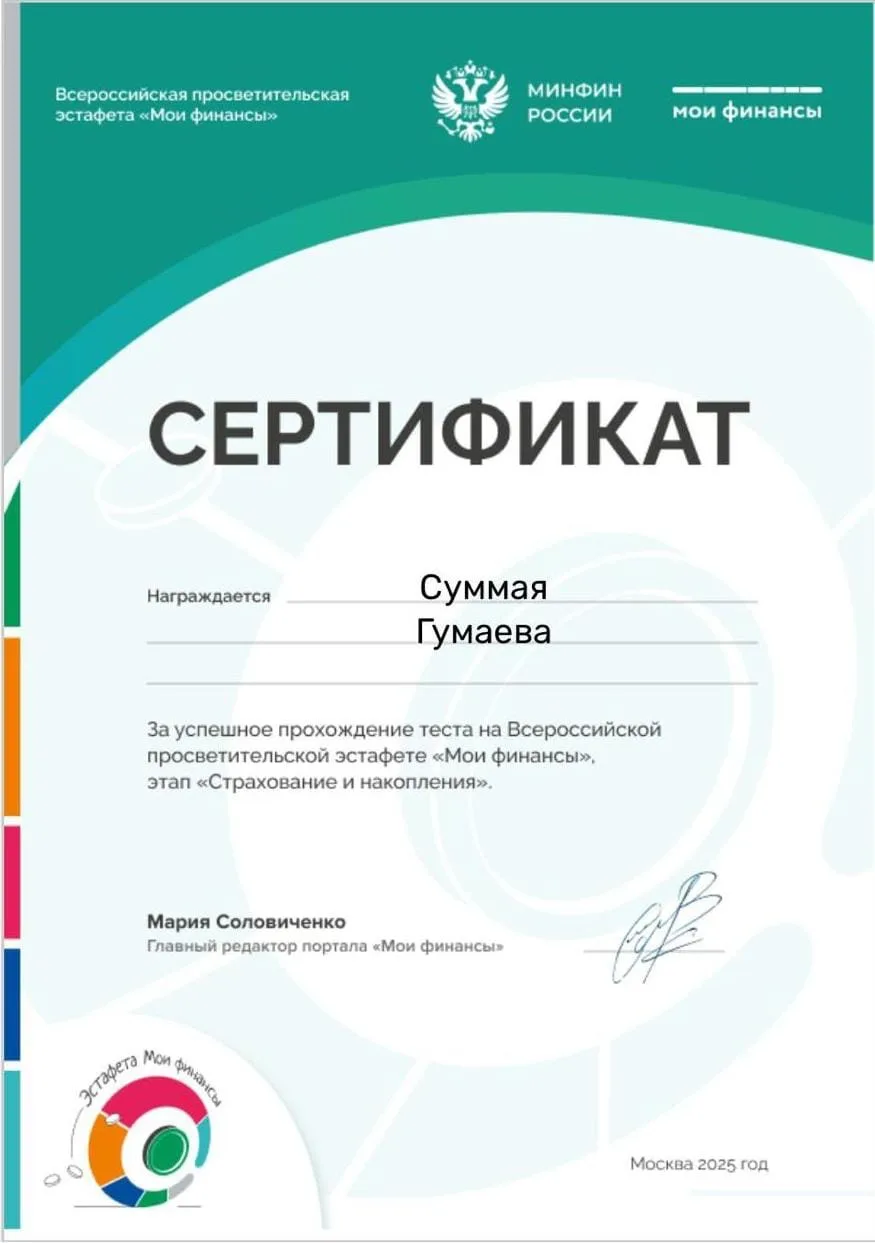 Думай о будущем: страхование и накопления».В рамках этапа наши учителя математики Тамаева А.О., Моасаева М.М., Исаева Л.В., Самбаева А.Р. рассказывали о построении финансовой защиты и создании накоплений с помощью страховых инструментов. Ключевые темы включают виды страхования, особенности заключения договоров, механизмы работы обязательного медицинского страхования и значение страховых взносов в Социальный фонд. Также были рассмотрены инструменты для долгосрочных сбережений.Для участников подготовлены образовательные материалы: видеоролики, памятки, чек-листы и плакаты. Учителя вместе обучающимися приняли участие в тестировании, чтобы закрепить полученные знания