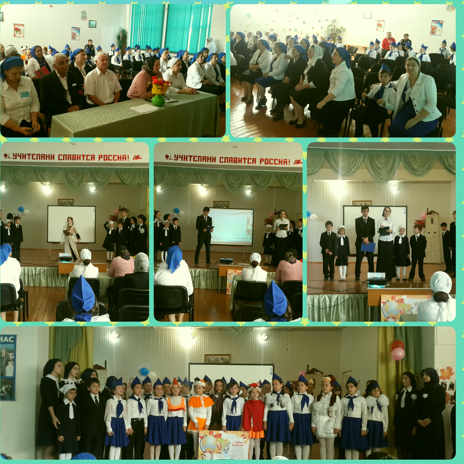 05.10.2015Сегодня в нашей школе отмечали День Учителя. После первой смены учителей собрали в актовом зале, где силами учащихся 8 "В" и 4 "А" классов был показан праздничный концерт. После концерта директором школы Чурчаевой А.М-А. были вручены грамоты учителям и завучам, отличившимся в прошлом учебном году.