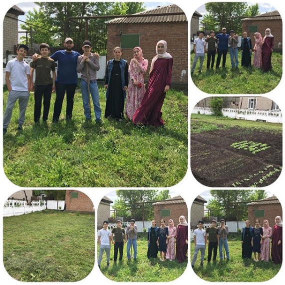 Производственная бригада 8 а и 8в классов на очистке участка от сорняков. Кл . рук. Султанов С.С.