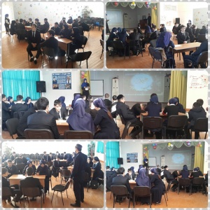 30.11.2015Сегодня, 30 ноября 2015 года, в целях духовно-нравственного воспитания подростающего поколения педагогом-организатором по ДНВ Арцаевым А.Х. и членами отряда ЮК был проведен конкурс "Знатоки семейного паспорта Пророка Мухаммада" (да благословит его АЛЛАХ и приветствует). Участники конкурса показали хорошие знания биографии Пророка Мухаммада (да благословит его АЛЛАХ и приветствует). По итогам конкурса 1 место заняла сборная команда 10 "А" и 9 "Г" классов, 2 место - 9 "А" класс, 3 место поделили между собой учащиеся 10 "Б" и 11 "Б" классов.
